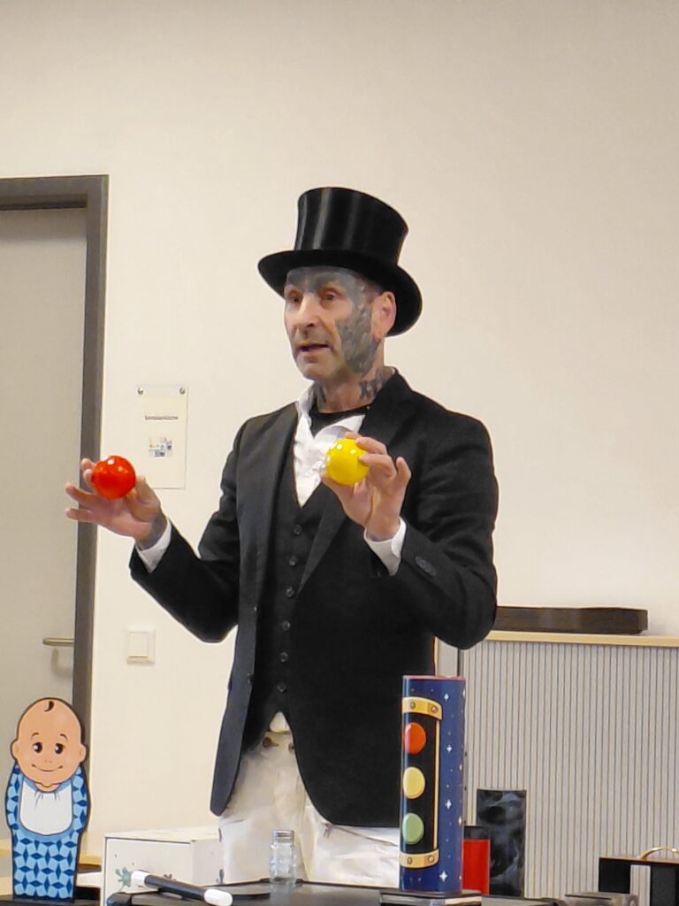 Das Highlight am Dienstag war die Zaubershow, bei der uns Professor Macic mit seiner Wunschfabrik besuchte. Alle Kinder freuten sich schon sehr und waren bereit sich verzaubern zu lassen.