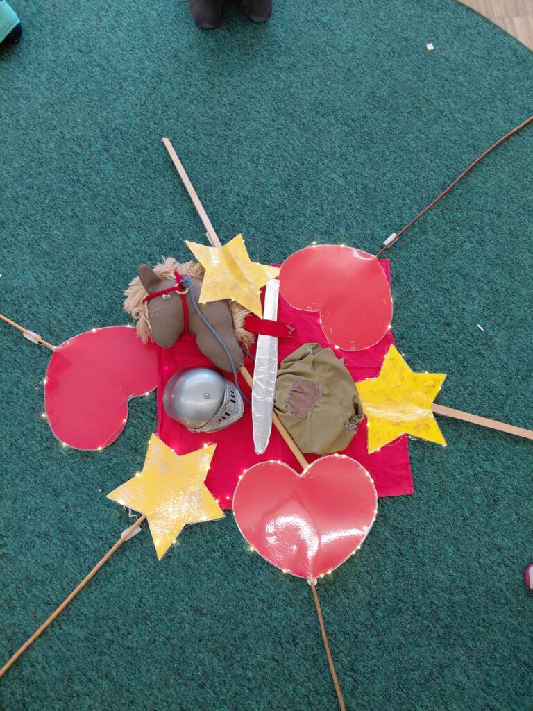 Die Kinder der Eulengruppe bereiteten einen Lichtertanz mit den passenden Symbolen zum Lied vor. Die Igelkinder verwöhnten die Bewohner mit einer Klanggeschichte und spielten dazu mit unterschiedlichen Orff Instrumenten. Die Senioren schauten begeistert zu.