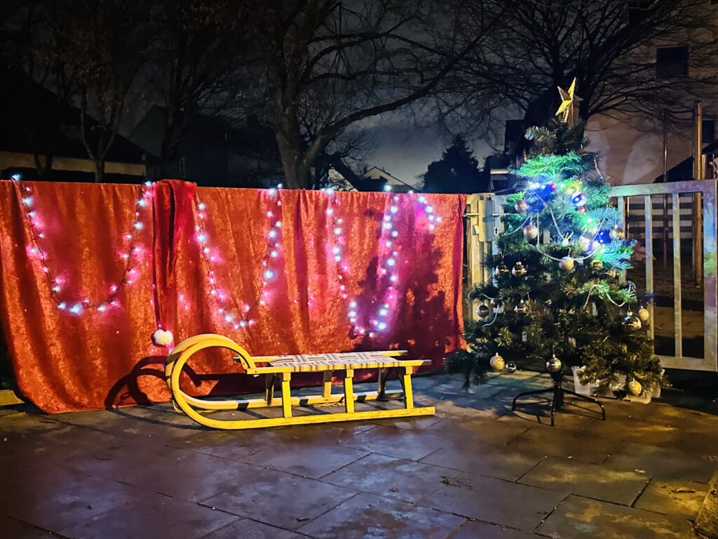 Fotostation mit Schlitten – Auf dem winterlichen Schlitten konnten sich die Kinder mit Eltern fotografieren lassen und ein besonderes Erinnerungsfoto mit nach Hause nehmen.